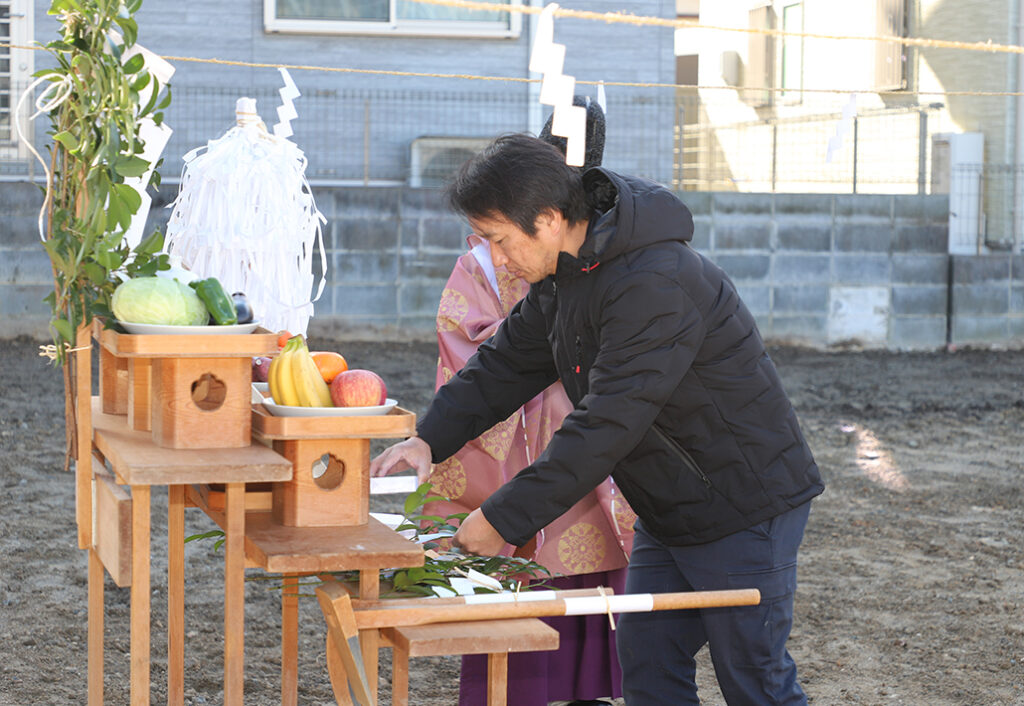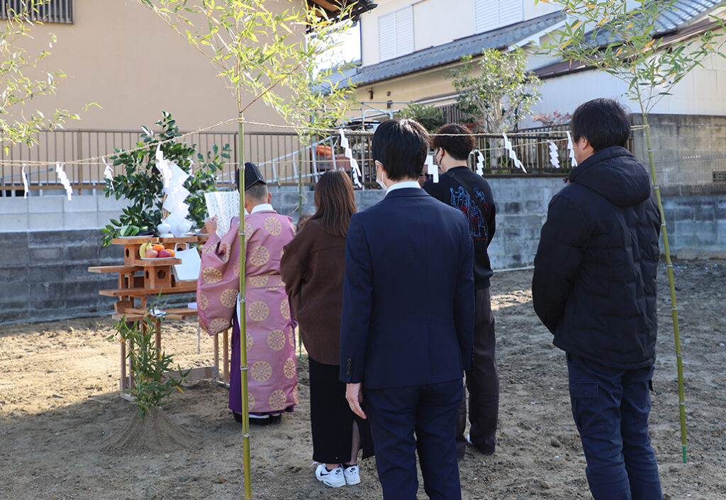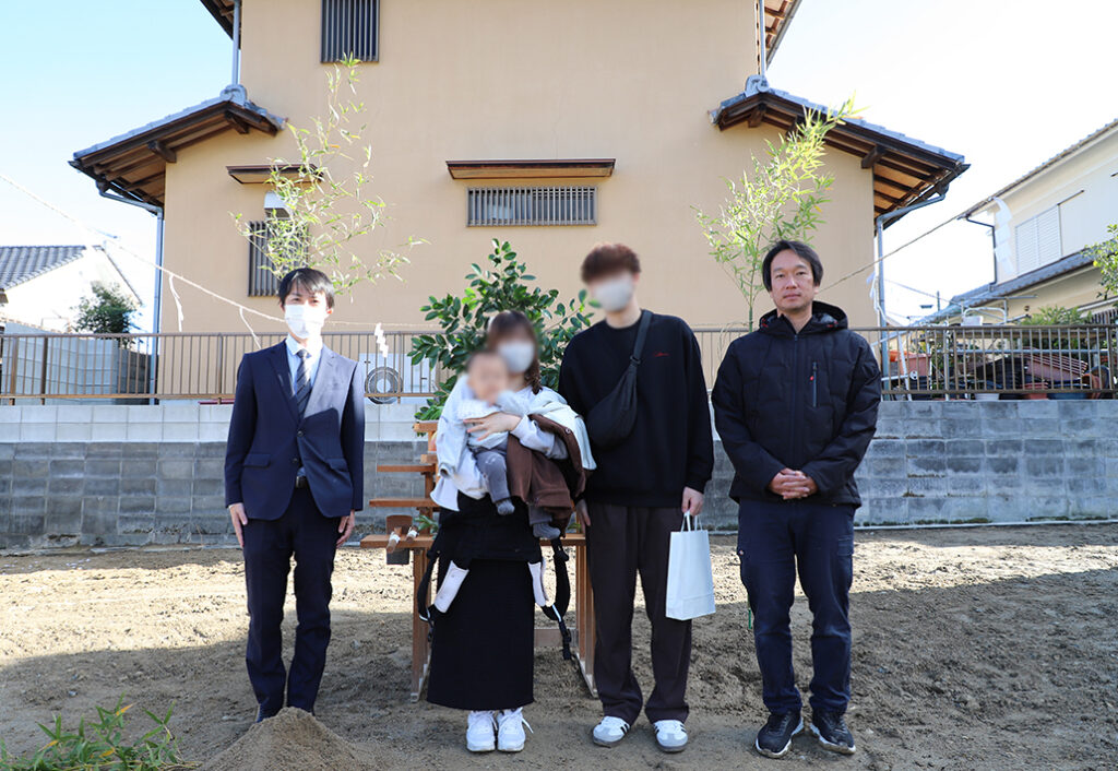 名張市桔梗が丘にてお施主様ご家族の新しい暮らしの第一歩となる地鎮祭を執り行いました。