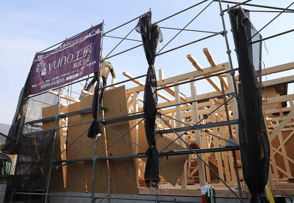 yuno工房の新築の現場では、大工社長も、営業も、同じ現場に立ちます。