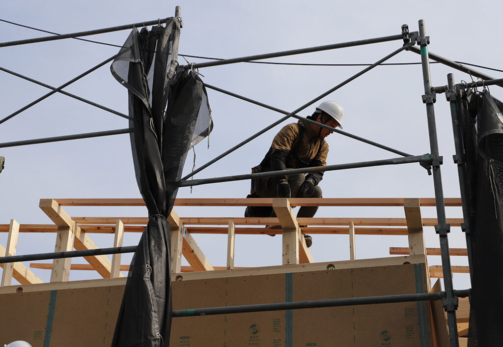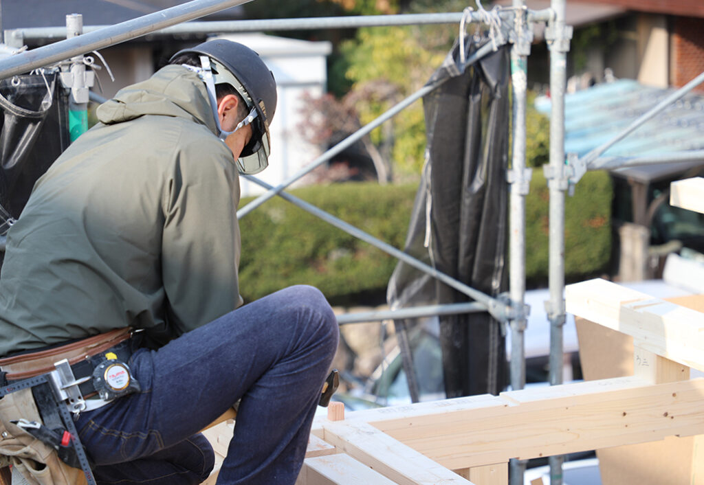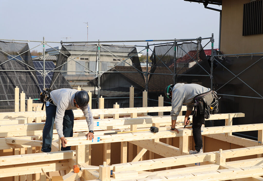 現場では、大工さんたちが声をかけ合いながら、息を合わせて作業を進めていきます。