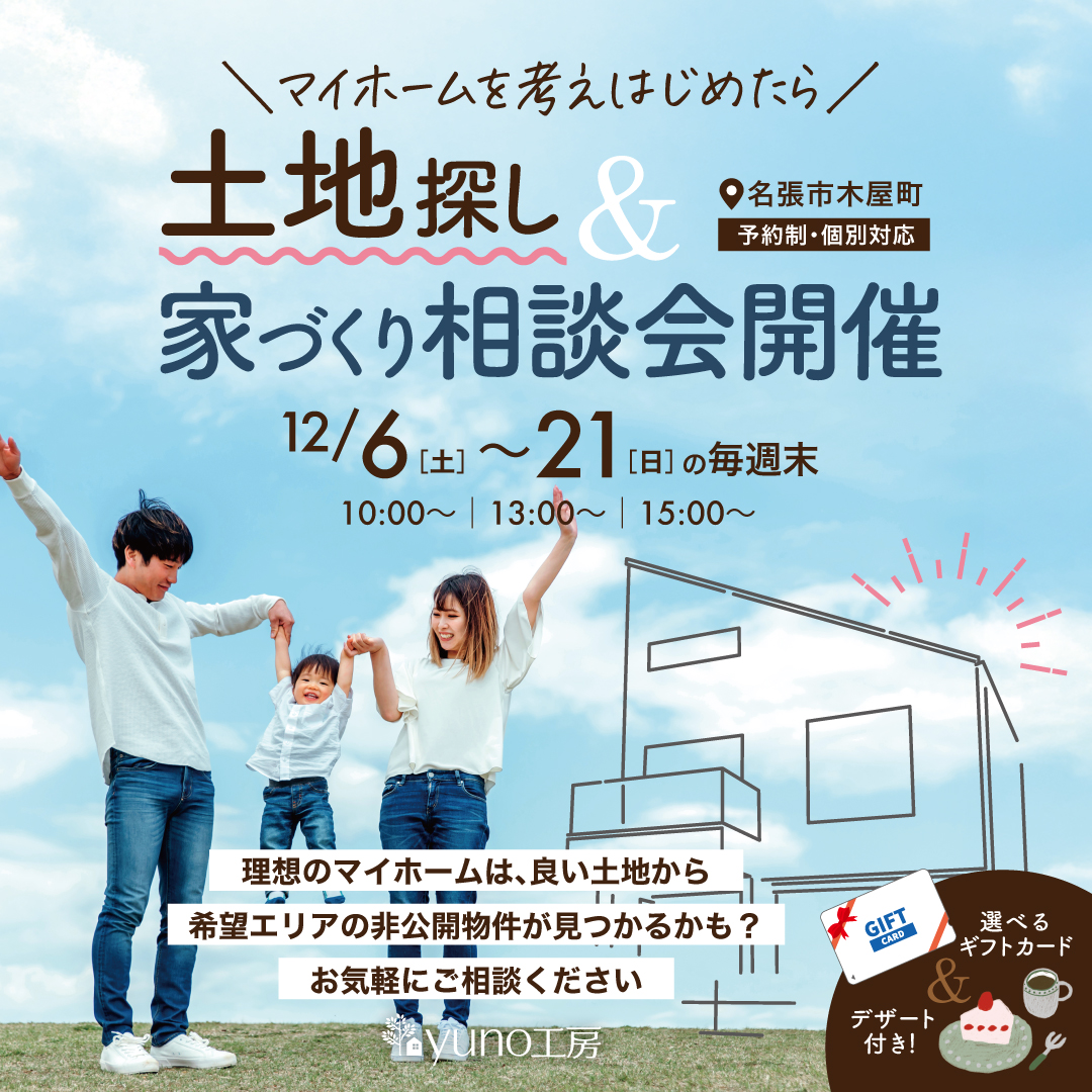 そんな方に向けた 土地と家づくりの個別相談会 を開催します。